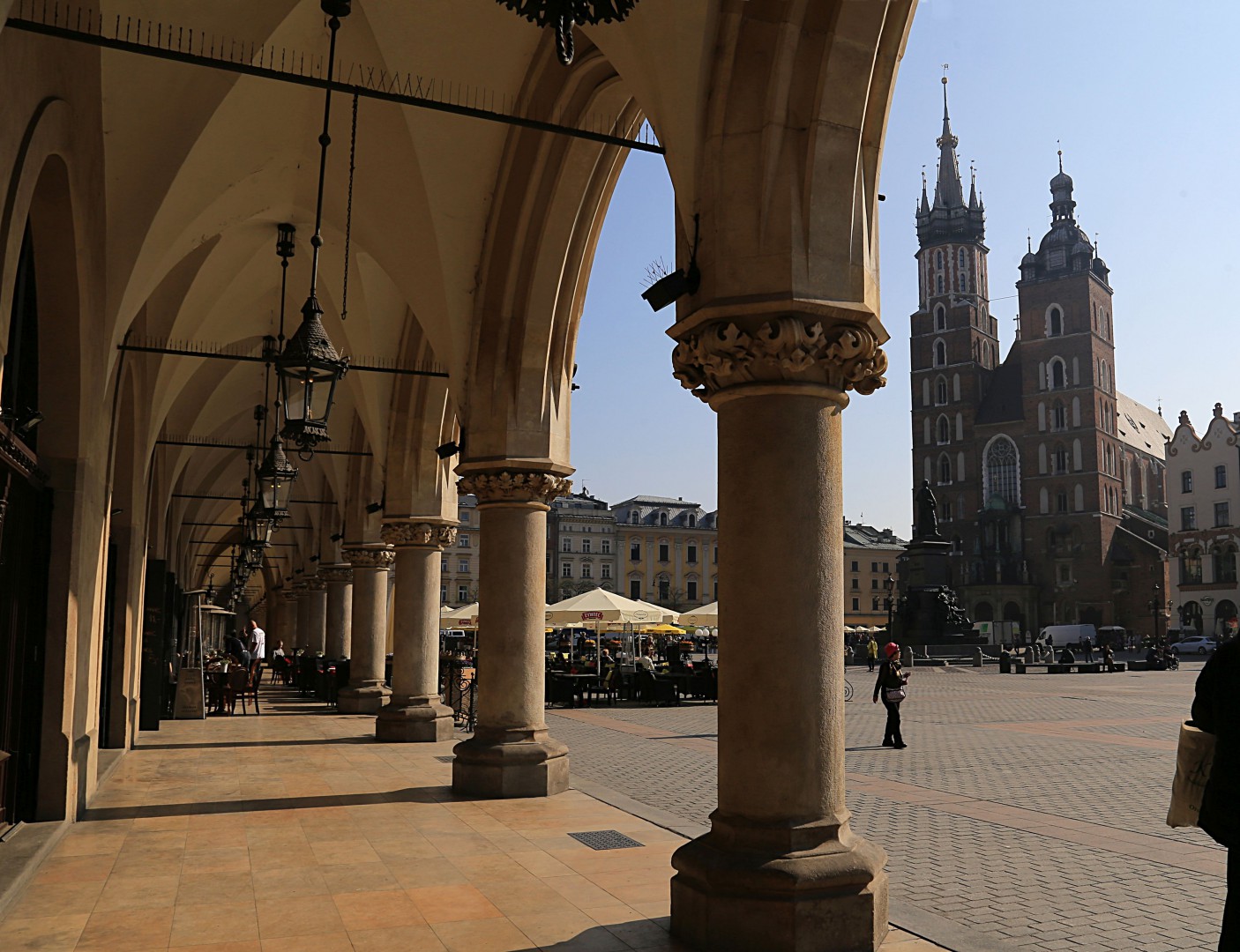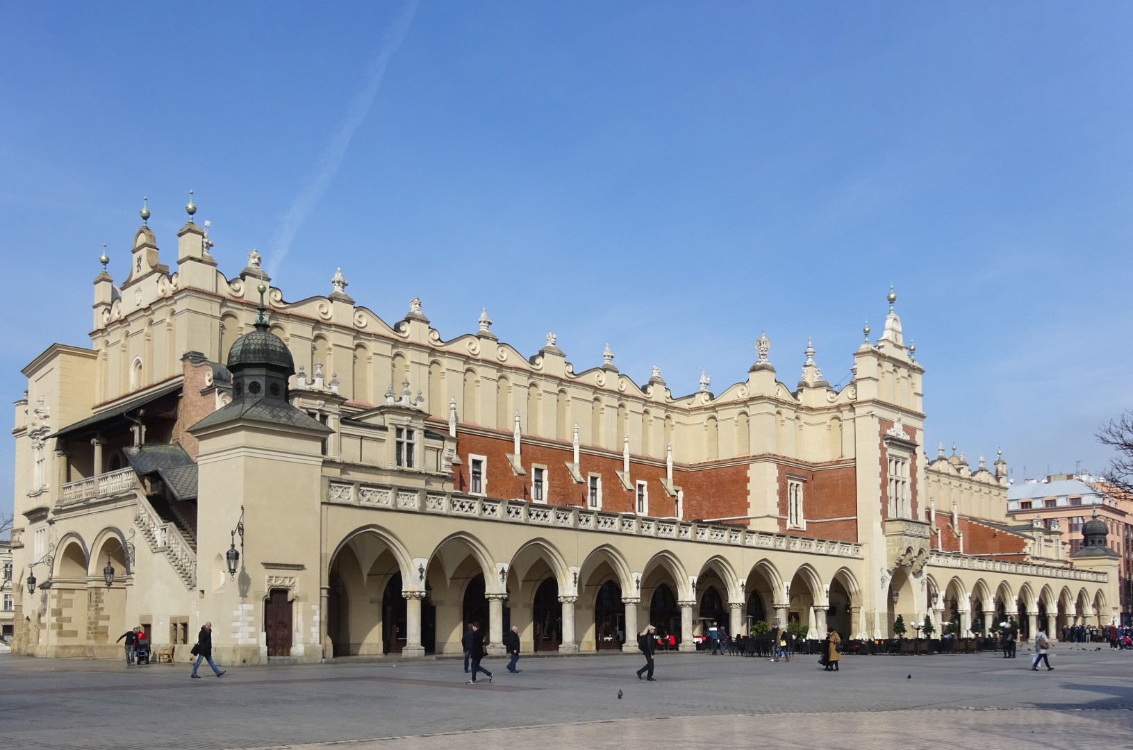 Fotografia ukazuje północną elewację Sukiennic od strony ulicy św. Jana.