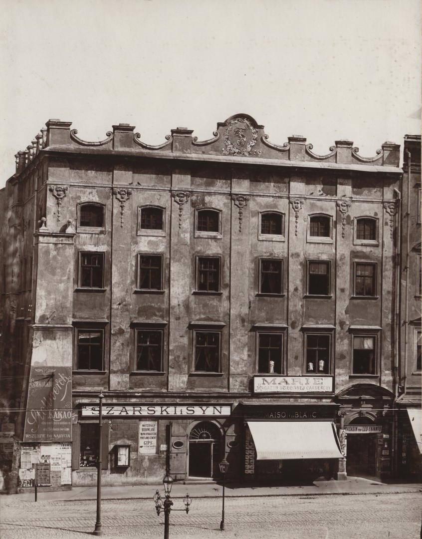 W 1853 r. właścicielem kamienicy został Stanisław Feintuch, który zmienił nazwisko na Szarski (od nazwy kamienicy). Na parterze otworzył on sklep kolonialny oraz hurtownię w podwórzu. Początkowo firma miała bardzo szeroki asortyment, sprzedawano tam: kawę, cegły, chleb, lakiery, z czasem firma przyjęła nazwę „Szarski i Syn”. Dzięki jego zaangażowaniu i zdolnościom handlowym w ciągu 40 lat „Szara” stała się największym domem handlowym miasta. To właśnie za jego sprawą dokonano renowacji budynku, podczas której kamienica zyskała młodopolskie zdobienia, np.na jednym z sufitów sam Józef Mehoffer wykonał polichromię. Okres świetności kamienicy przypadający na początek XX w., został uwieczniony na zdjęciu wykonanym przez Kriegerów. Mieściły się tam wówczas oprócz sklepu właściciela również: Marie – Magazyn Dziecinnej Garderoby (Magasin pour les enfants), Maison de Blanc (najprawdopodobniej sklep z bielizną). Na szkarpie zamieszczano liczne reklamy, ogłoszenia i afisze teatralne. Powolny upadek firmy rozpoczął się podczas II wojny światowej, a zakończenie działalności miało miejsce w 1950 r. Okres świetności kamienicy przypadający na początek XX w., został uwieczniony na zdjęciu wykonanym przez Kriegerów. Mieściły się tam wówczas oprócz sklepu właściciela również: Marie – Magazyn Dziecinnej Garderoby (Magasin pour les enfants), Maison de Blanc (najprawdopodobniej sklep z bielizną). Na szkarpie zamieszczano liczne reklamy, ogłoszenia i afisze teatralne. Powolny upadek firmy rozpoczął się podczas II wojny światowej, a zakończenie działalności miało miejsce w 1950 r.