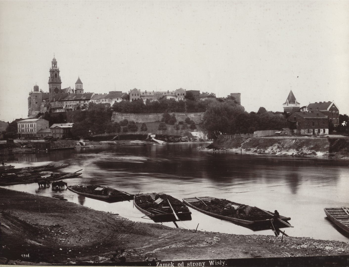 Prezentowana fotografia przedstawia ujęcie Zamku Wawelskiego, które wykonał Natan Krieger. Fotografia z ok. 1890 r. to widok Wawelu z prawego brzegu Wisły, od strony zachodniej.